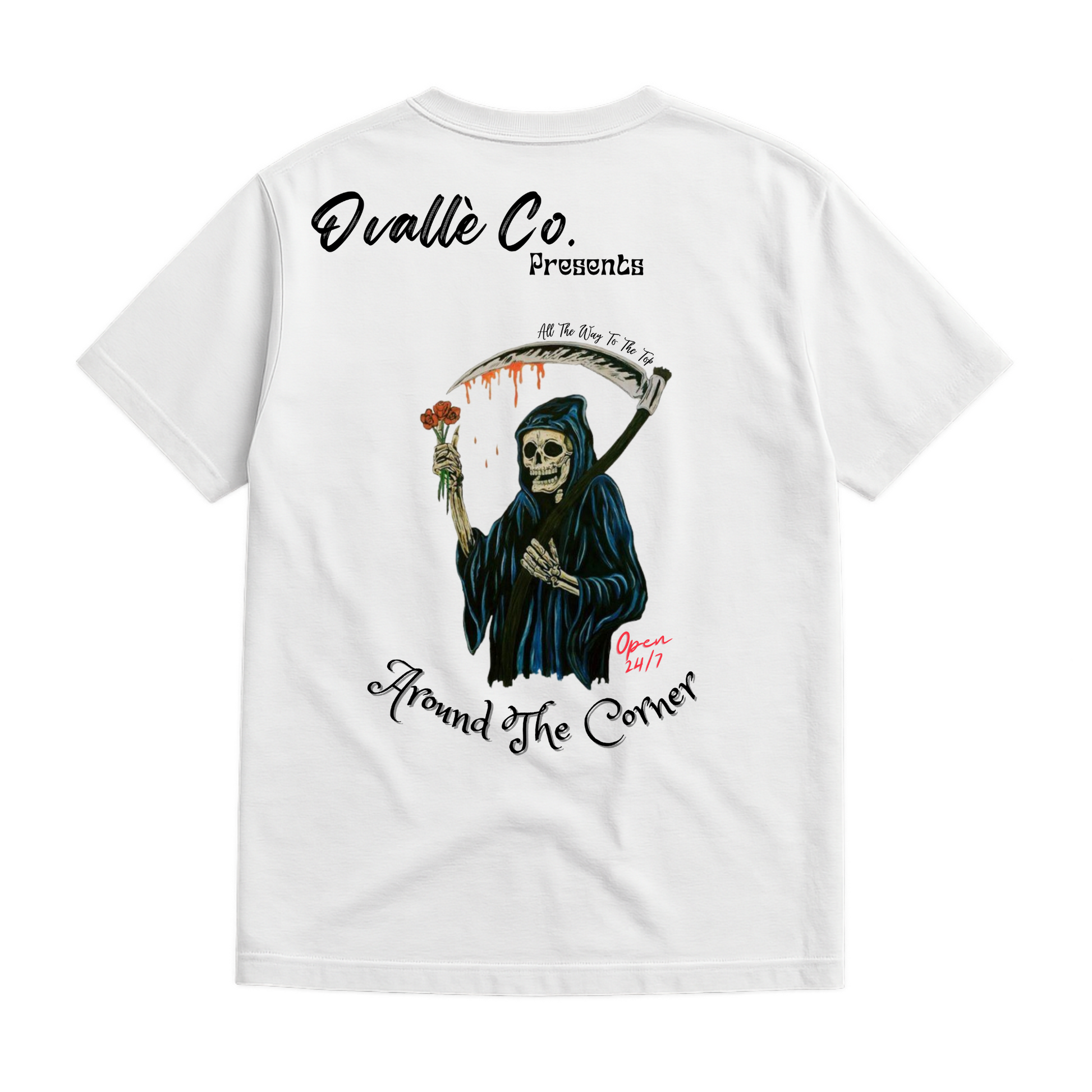 Death in Bloom captures the duality of charm and menace — the Reaper offering a single flower in one hand while his scythe drips with the other. A design that’s equal parts dark humor and raw edge, printed on heavyweight cotton to last a lifetime.