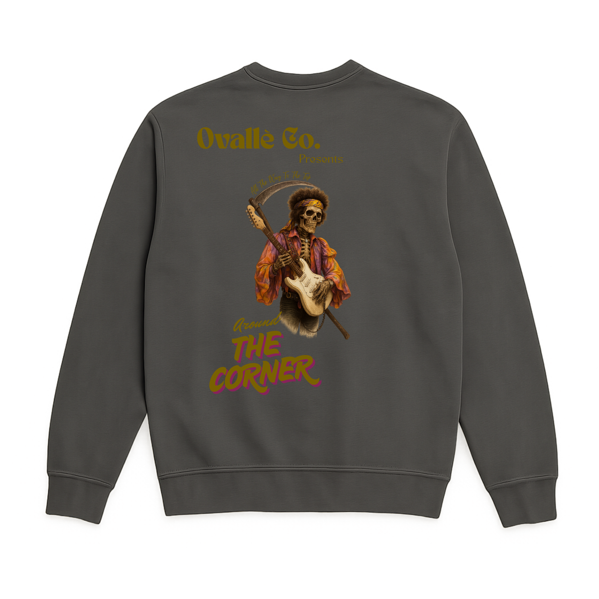 Purple Haze – Gold Label honors the legend of sound and rebellion, stripped back to a golden finish with the reaper channeling electric chaos through his guitar. Printed on Pepper Comfort Colors heavyweight Crewneck.