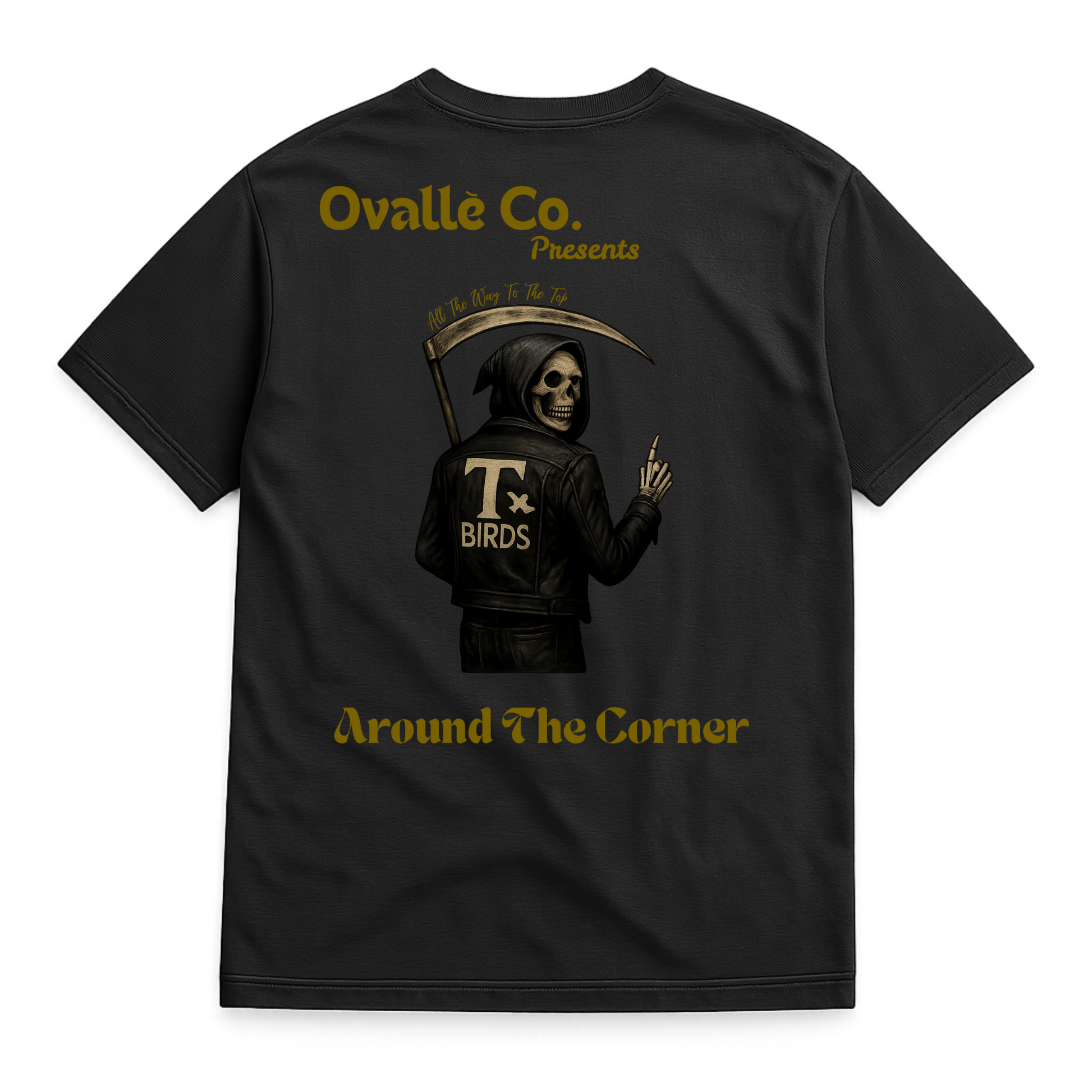 The Gold Label collection is Ovallè Co.’s premium tier — rare designs that run all quarter, crafted for those who want the highest level of detail and impact. Reaper Lightning – Gold Label takes the classic homage and sharpens it with a bold gold finish, the reaper in his T-Birds jacket standing tall with attitude. Printed on premium black Comfort Colors cotton, this piece brings heavyweight durability and a golden edge that won’t fade.