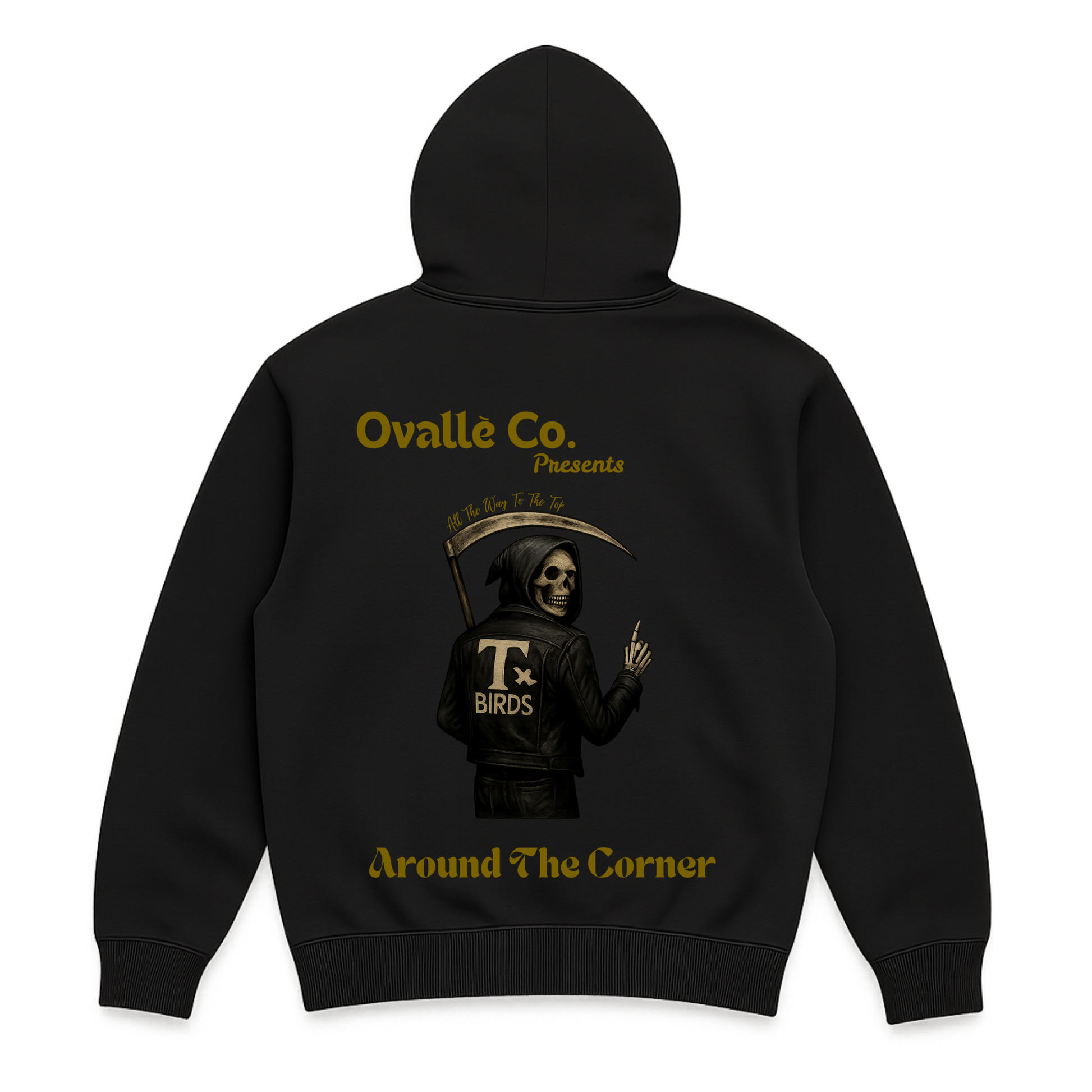 Reaper Lightning – Gold Label elevates the classic homage with a stripped-back gold treatment, the reaper in his T-Birds jacket standing bold against the darkness. Printed on heavyweight black Gildan hoodie, this hoodie delivers exclusivity, warmth, and durability all quarter long.