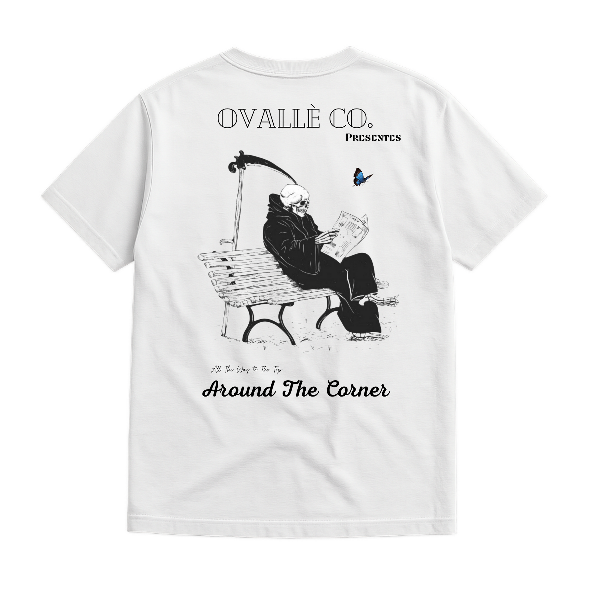 Reaper’s Digest is death on downtime — the Reaper kicking back on a bench, scythe at his side, catching up on the daily news. A clean black-and-white design, available exclusively on white, that strips things down to the essentials while keeping the Ovallè edge.